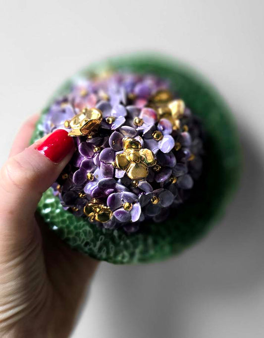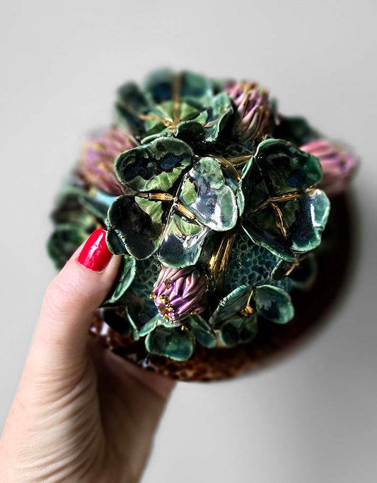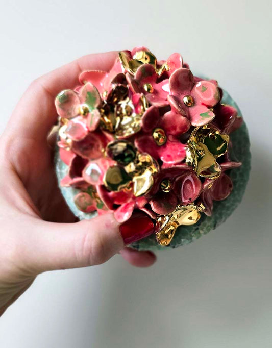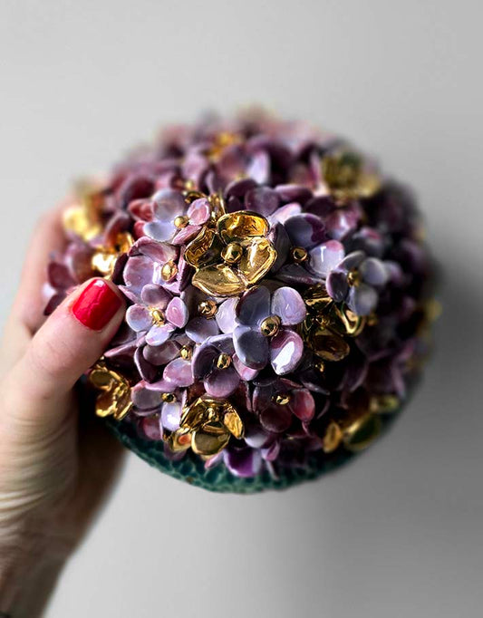 Vase Hortensia et Digitale – Pièce Unique Faite à la Main avec de l'or fin 22 carats