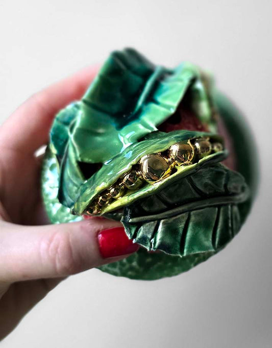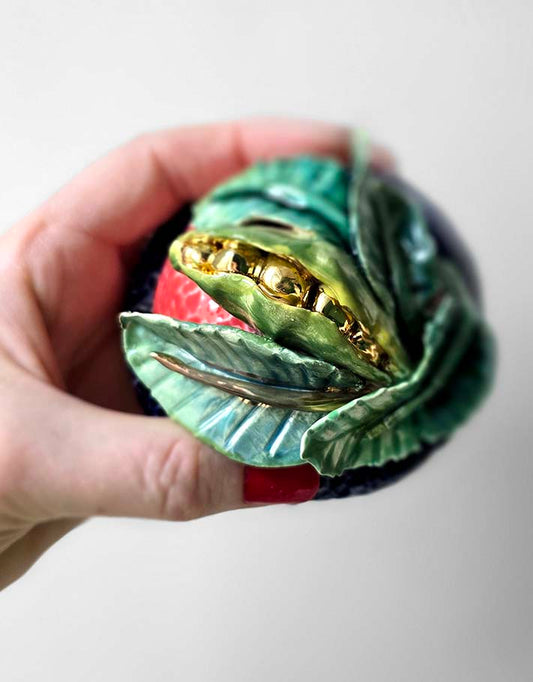 Porte encens Céramique Émaillée, Radis et Or - Pièce Unique Fait Main