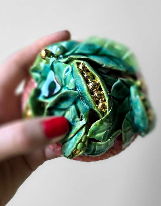 Porte encens Céramique Émaillée, Petits pois et Or - Pièce Unique Fait Main