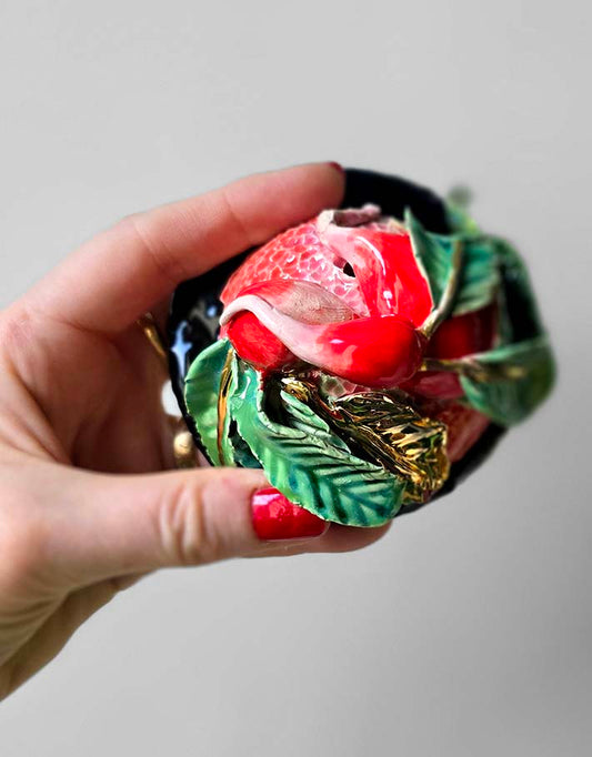 Porte encens Céramique Émaillée, Coquelicot et Or - Pièce Unique Fait Main