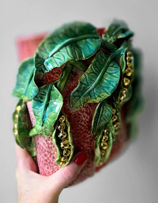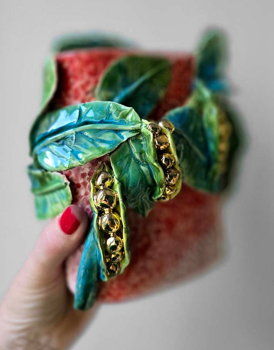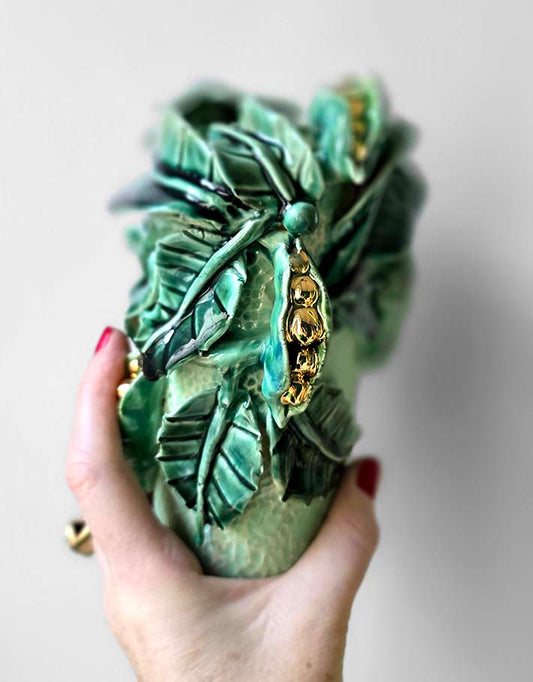 Vase en Céramique Émaillée, Petits pois - Pièce Unique Fait Main