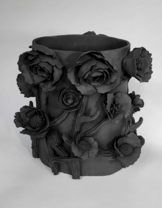 Vase en Céramique Émaillée, Hortensias et Or - Pièce Unique Fait Main