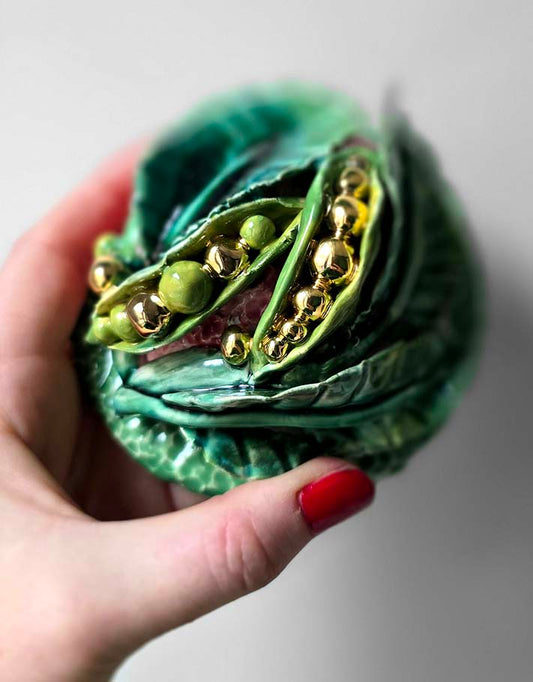 Porte encens Céramique Émaillée, Petits pois et Or - Pièce Unique Fait Main
