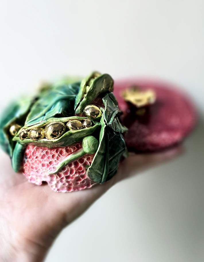 Porte encens Céramique Émaillée, Petits pois et Or - Pièce Unique Fait Main