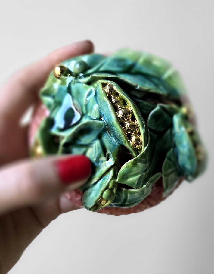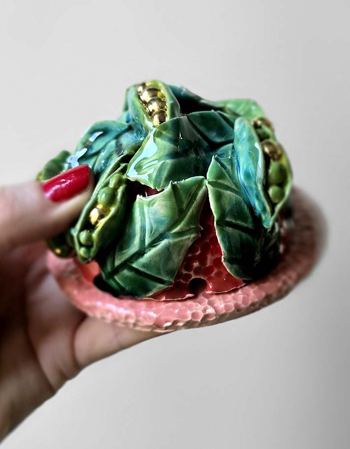 Porte encens Céramique Émaillée, Petits pois et Or - Pièce Unique Fait Main