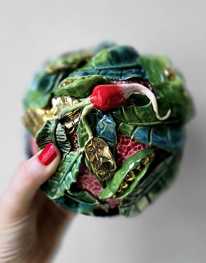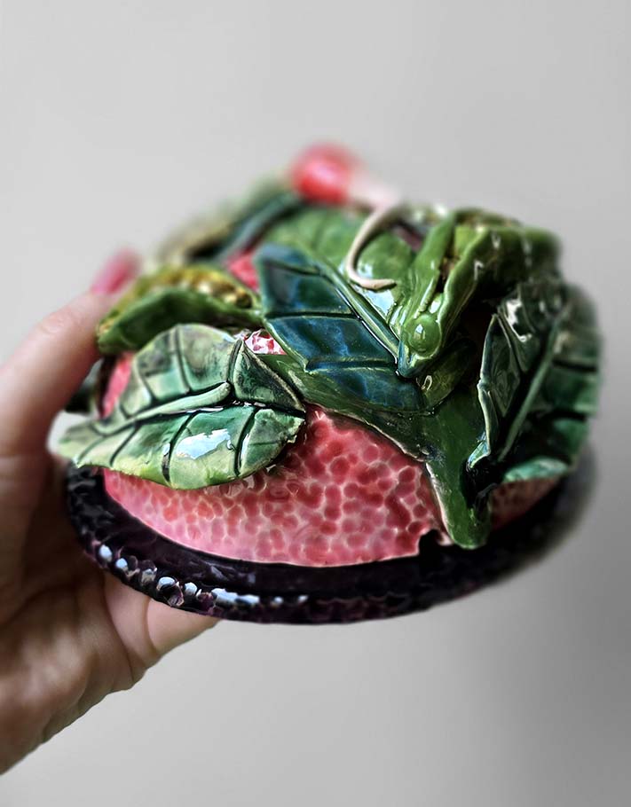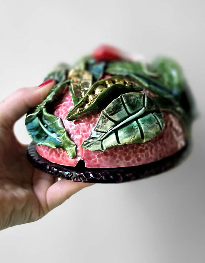 Porte encens Céramique Émaillée, Petits pois et Or - Pièce Unique Fait Main
