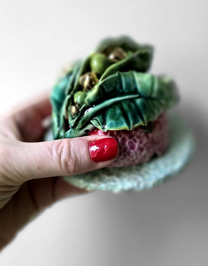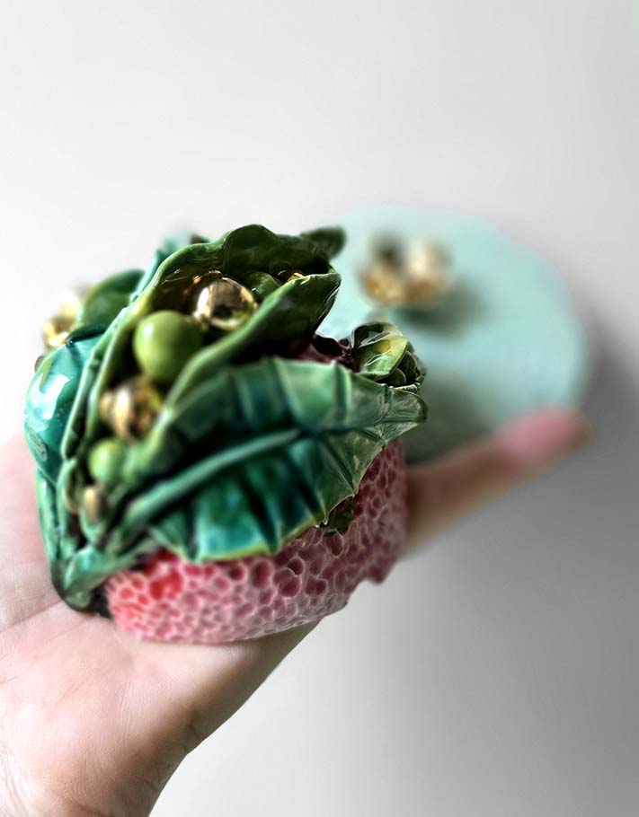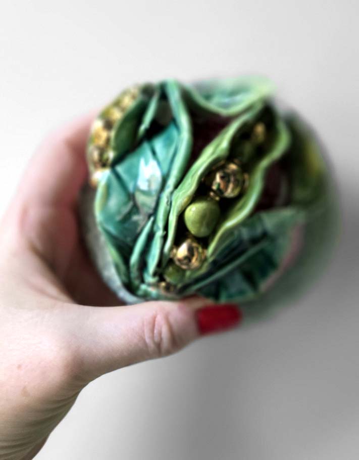 Porte encens Céramique Émaillée, Petits pois et Or - Pièce Unique Fait Main