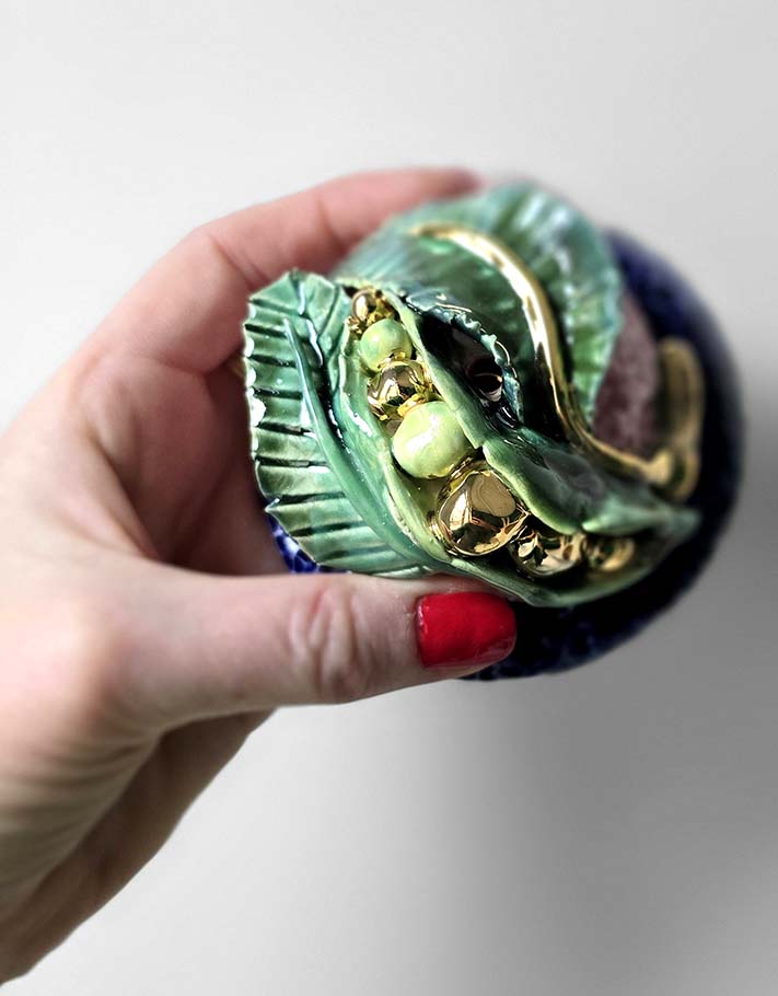 Porte encens Céramique Émaillée, Petits pois et Or - Pièce Unique Fait Main