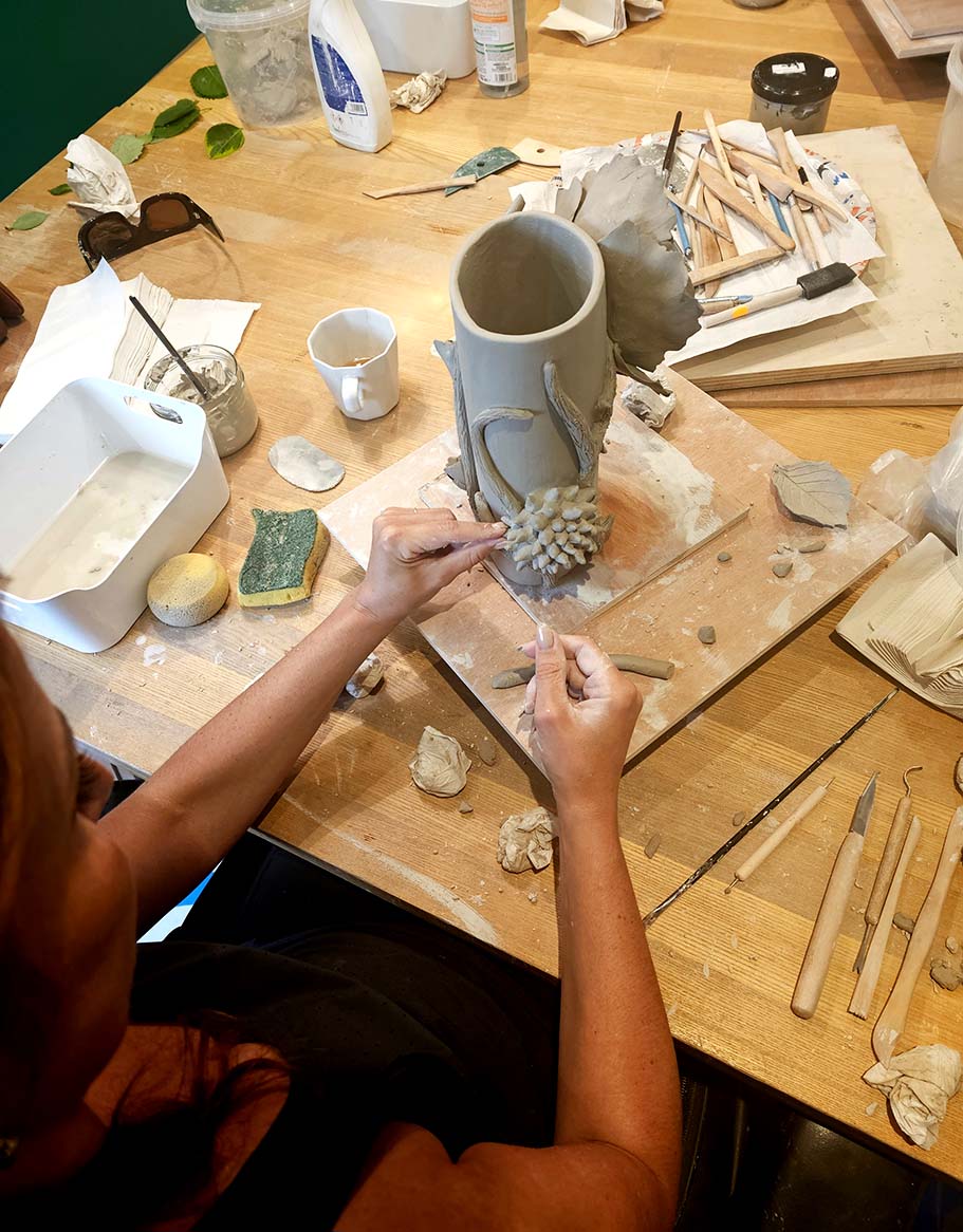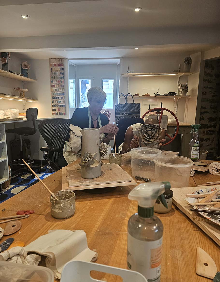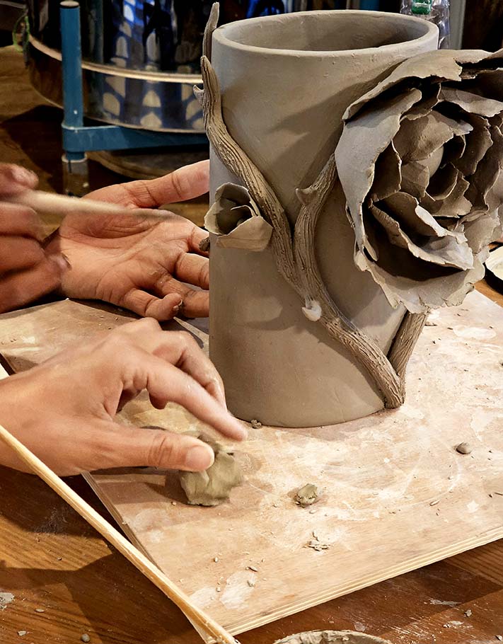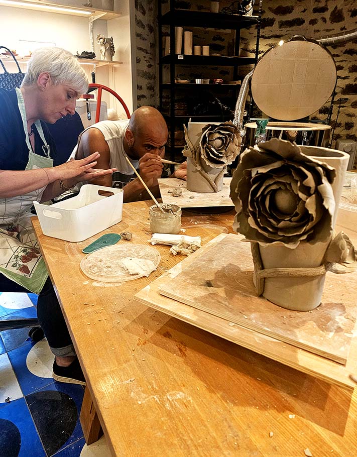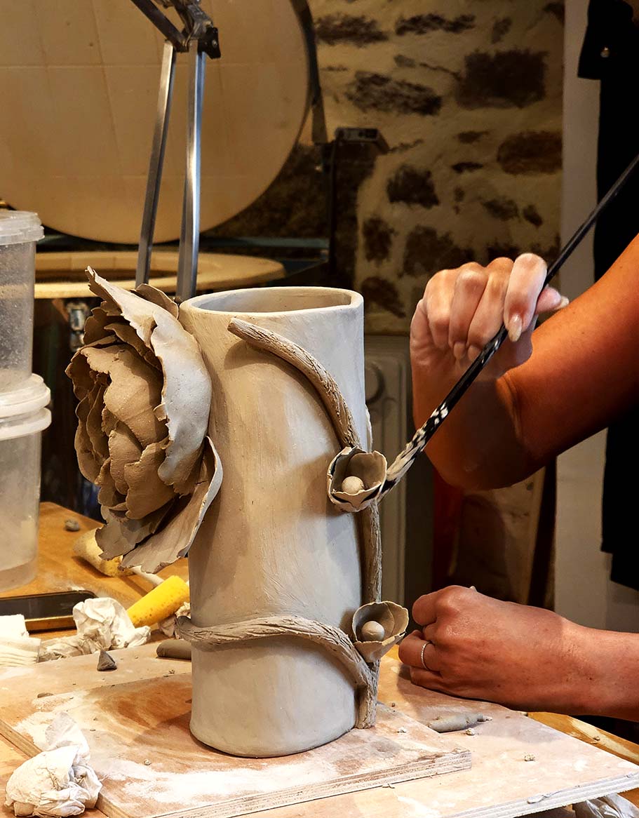 During these two days, you will learn how to shape a 20 cm tall vase with floral decorations.